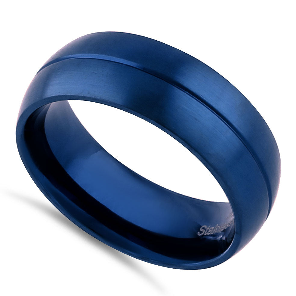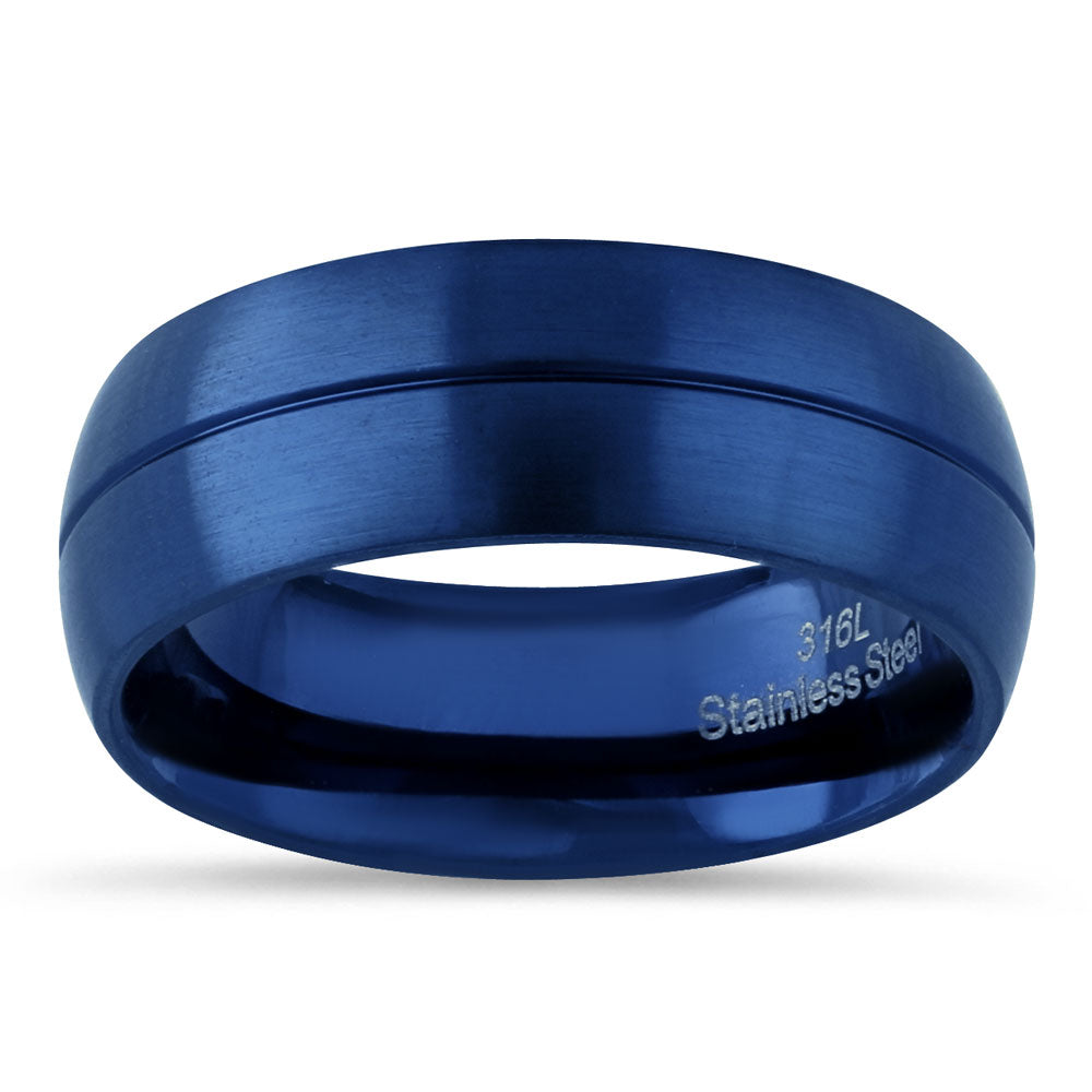 Blue Stainless Steel Blue Plated Groove Band Ring
