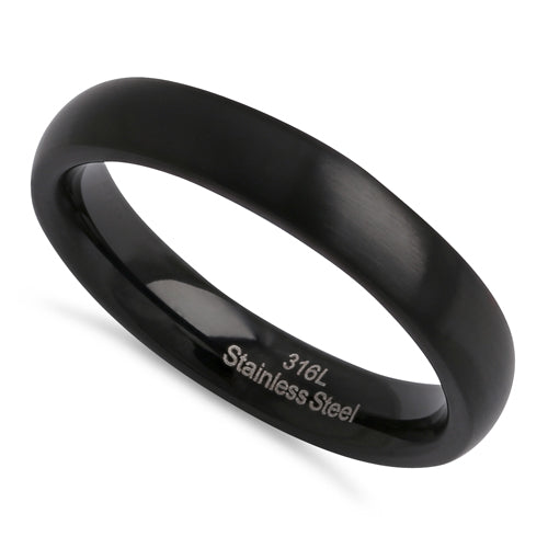 Stainless Steel 4mm Black Brushed Wedding Band Ring