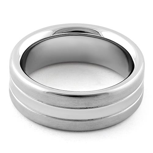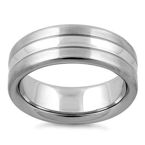 Stainless Steel Center Polished Double Groove Satin Finish Band Ring