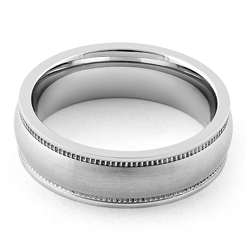 Stainless Steel Coin Edged Satin Finish Band Ring