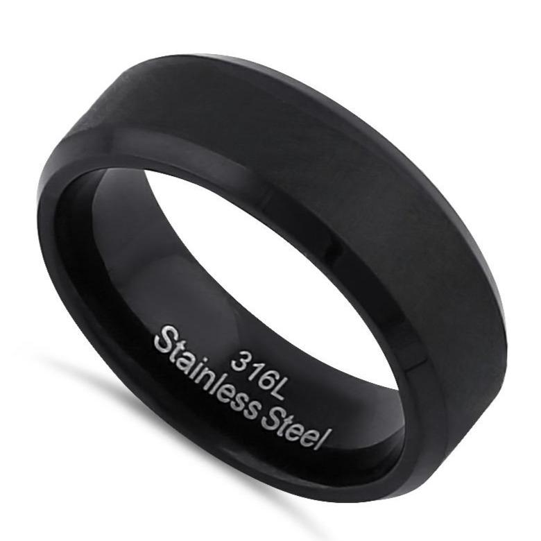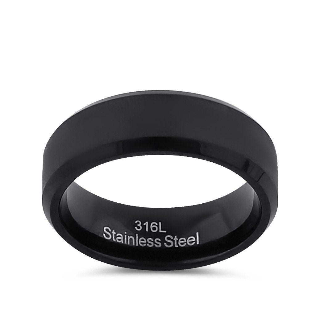 Stainless Steel Men's Black Matte with Polish Edges Wedding Band