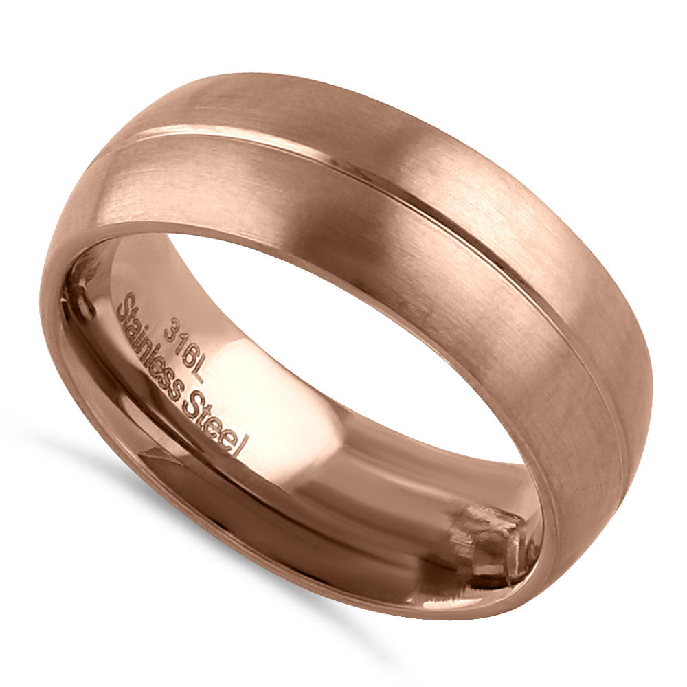 Stainless Steel Rose Gold Plated Groove Band Ring