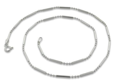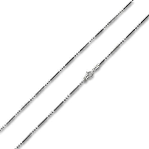 Sterling Silver Bar & 3 Beads Chain Necklace - 1.5mm
