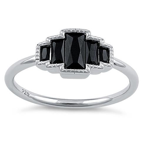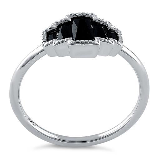 Sterling Silver Five Radiant Cut Black CZ Ring