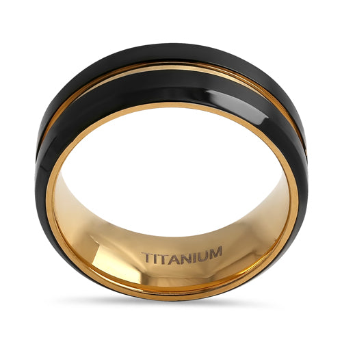 Titanium Black and Yellow Gold 8mm Brushed with Stripe Band Ring