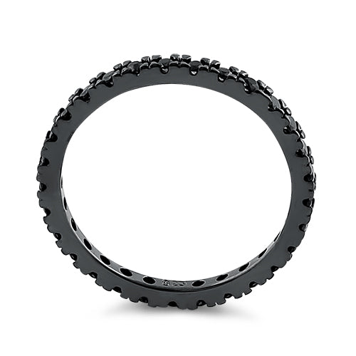 Black Rhodium Sterling Silver Black Eternity Black CZ Ring