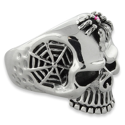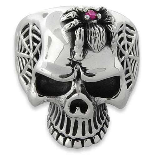 Sterling Silver Spidery Skull Ring with Cubic Zirconia