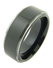 Men's Tungsten Carbide Wide Flat Black Striped 8MM Wedding Band Ring