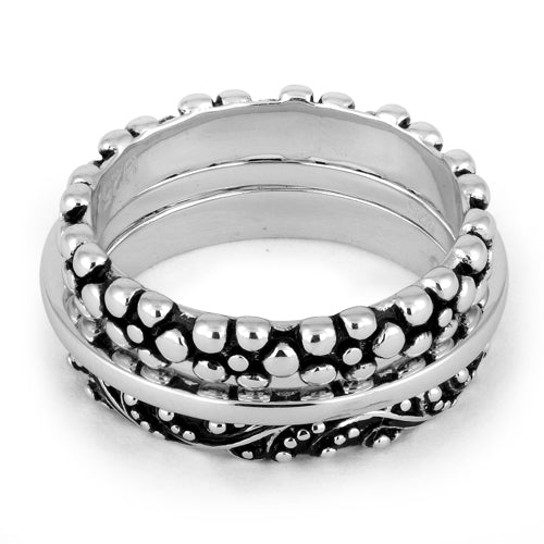 Sterling Silver 3 Set Bali Design Ring