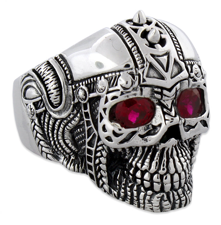 Sterling Silver Ancient Guard Skull Ring with CZ Eyes