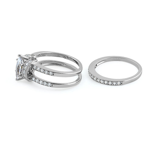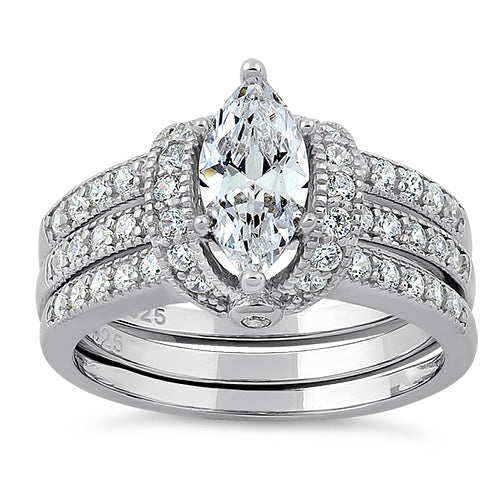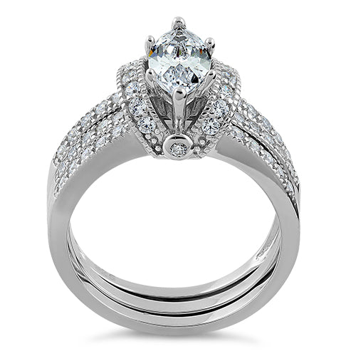 Sterling Silver Clear Marquise CZ Set Ring
