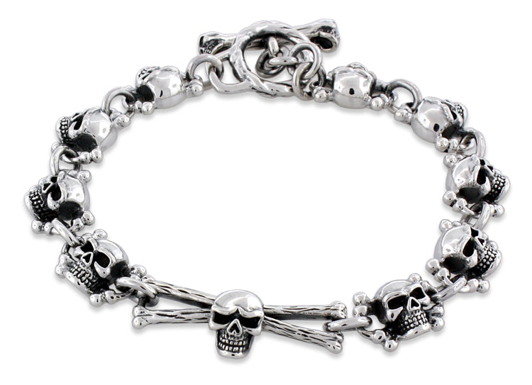 Skulls to adorn even the delicate of wrists ,with a twist of the rocker inside trying to get out, beautiful crafted piece.