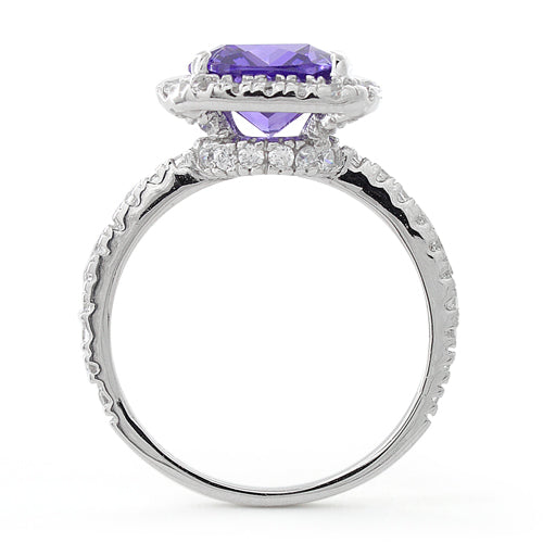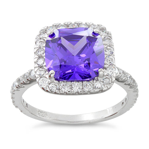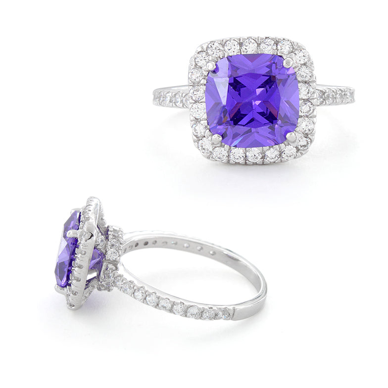 Sterling Silver Cushion Cut Amethyst CZ Ring