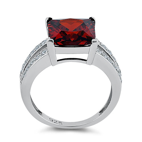 Sterling Silver Garnet Square CZ Ring
