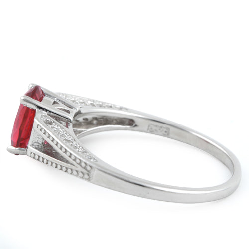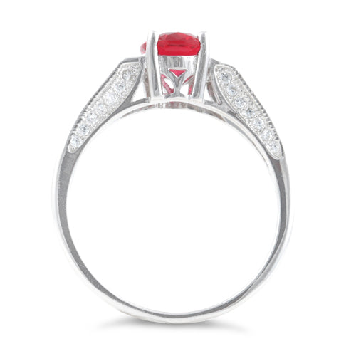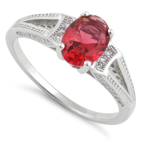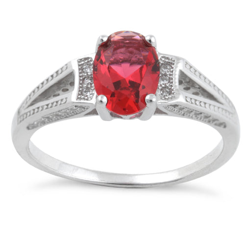 Sterling Silver Ruby Oval Cut CZ Ring