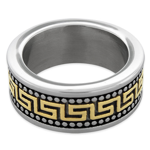 Stainless Steel Gold Plate Greek Pattern Band Ring