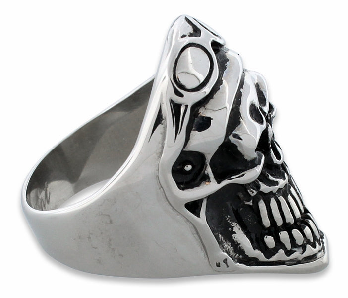 This skull ring is made of Surgical Stainless Steel, hand crafted with the Finest Detail giving it a very Masculine and Dark look. Add this manly piece to your collection and see just what kind of attention you will get. Don't be fooled by our low price This ring is top quality and retails for much, much, more in stores! By importing directly from the source we are able to offer this magnificent ring at a tremendous discount.
