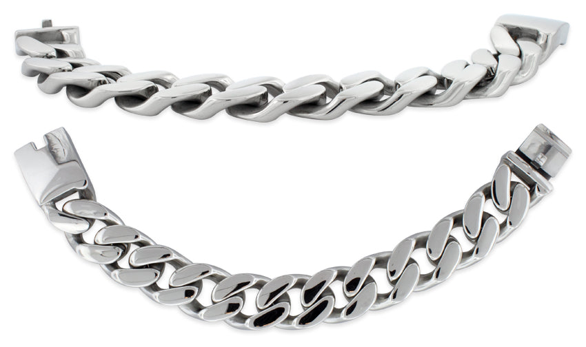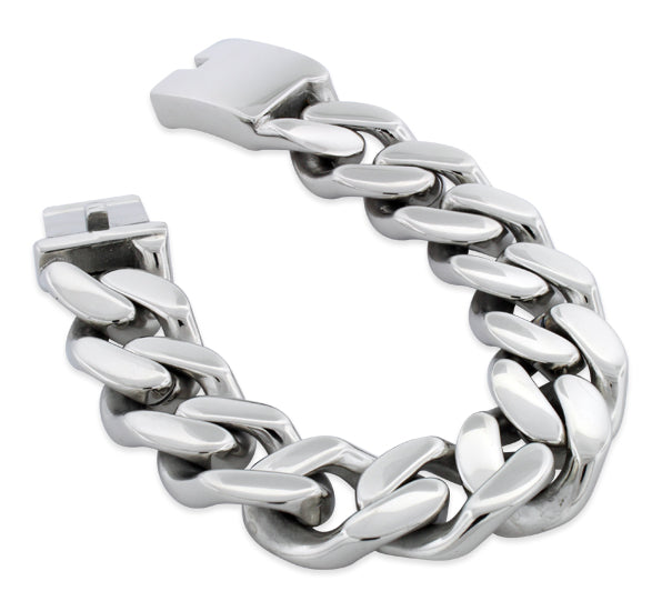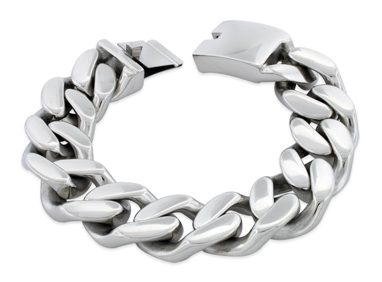 Great bracelet for big guys.. im 6'5 and weight 290. Ex football player with large wrist.. it looks great and is the perfect width.<p></p><b><font size='3' color='green'>Pros:</font></b><br>Big, Shiny and not too heavy.<p></p><b><font size='3' color='Red'>Cons:</font></b><br>Runs a little big. Had to send mine back for a diff size.. Anticipate the return..