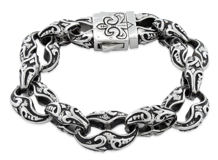This is a Stunning, Stainless Steel Bracelet. This very unique Bracelet is crafted out of Stainless Steel in a unique pattern. This Bracelet is especially well-made. Don't be fooled by our low price! This Bracelet is top quality and retails for much much more in stores! By importing directly from the source we are able to offer this magnificent bracelet at a tremendous discount.
