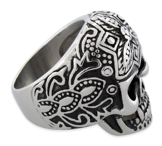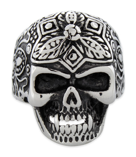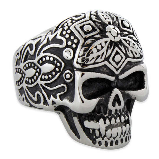 Stainless Steel Floral Skull Ring