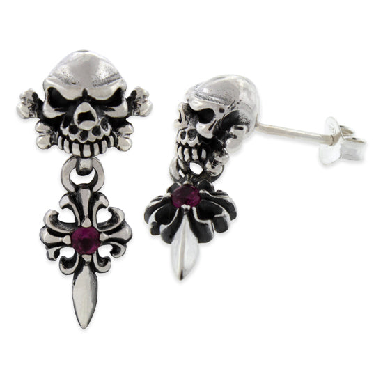 Exotic, hand-crafted Sterling Silver Cross Fleury Bones Skull CZ Earrings. Intricately designed Sterling Silver creates a very unique and elegant look! Embellish your beautiful ears with this piece!