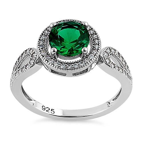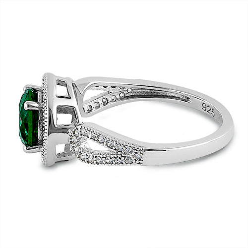 Sterling Silver Emerald CZ Halo Engagement Infinity Band Ring
