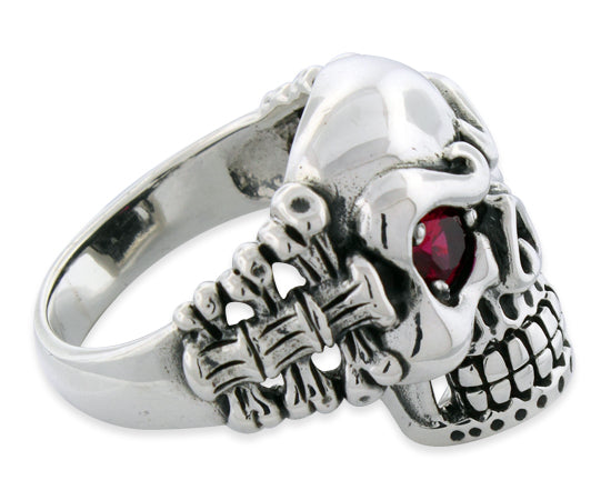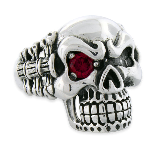 Sterling Silver Skull Vertebrae CZ Ring