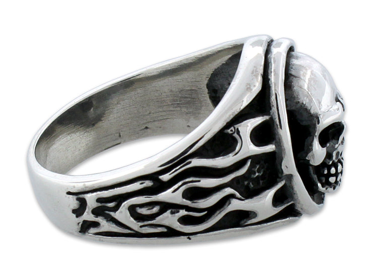 When the ring first arrived I was initially disappointed because it was smaller than I thought that it would be. After wearing it for over a year now I can honestly say that if it were any larger it would be a nuisance, so it's actually the prefect size for me. I don't know why people are complaining about the size of the band on the back side, mine seems pretty thick. Maybe they accidentally ordered a woman's ring? Great quality, love that it's silver, would definitely buy from again. <p></p><b><font size='3' color='green'>Pros:</font></b><br>Looks great, great quality.