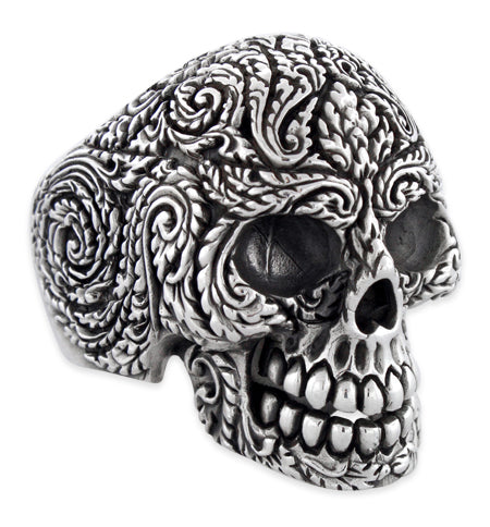 The detailing of the vines in this skull ring are crisp and very defined. I really like to look at this ring on my finger. It takes a polish very well.<p></p><b><font size='3' color='green'>Pros:</font></b><br>great detail