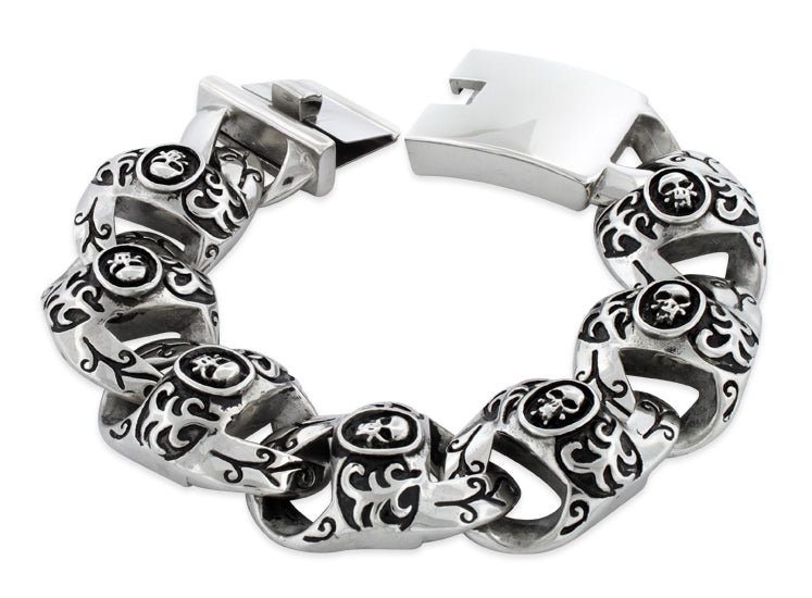 This is a Stunning, Stainless Steel Bracelet. This very unique Bracelet is crafted out of Stainless Steel in a unique pattern. This Bracelet is especially well-made. Don't be fooled by our low price! This Bracelet is top quality and retails for much much more in stores! By importing directly from the source we are able to offer this magnificent bracelet at a tremendous discount.