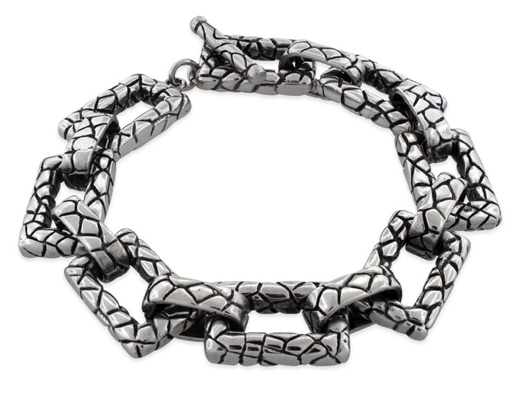This is a Stunning, Stainless Steel Bracelet. This very unique Bracelet is crafted out of Stainless Steel in a unique pattern. This Bracelet is especially well-made. Don't be fooled by our low price! This Bracelet is top quality and retails for much much more in stores! By importing directly from the source we are able to offer this magnificent bracelet at a tremendous discount.