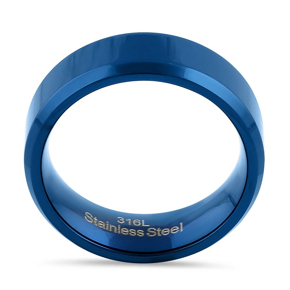 Stainless Steel 7mm Blue High Polish Band Ring