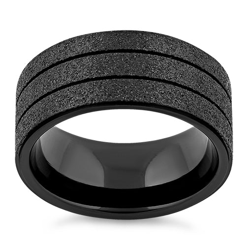 Stainless Steel Black Double Groove Sandblast Finish Ring