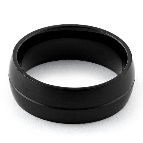 Stainless Steel Black Groove Band Ring