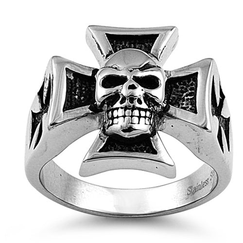 Stainless Steel Iron Cross Skull Ring