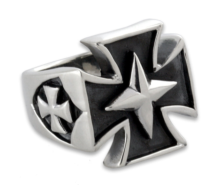 Maltese cross and star is a plus<p></p><b><font size='3' color='Red'>Cons:</font></b><br>I prefer stainless steel.