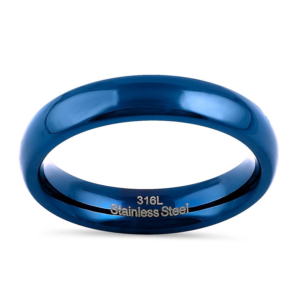 Stainless Steel 4mm Blue High Polish Band Ring