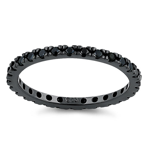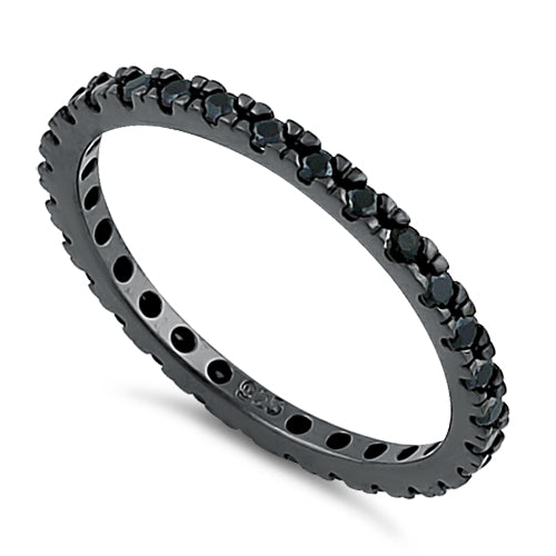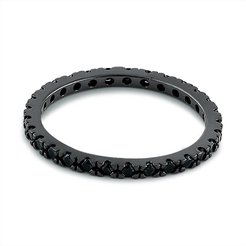 Black Rhodium Sterling Silver Black Eternity Black CZ Ring