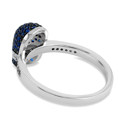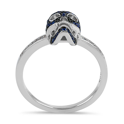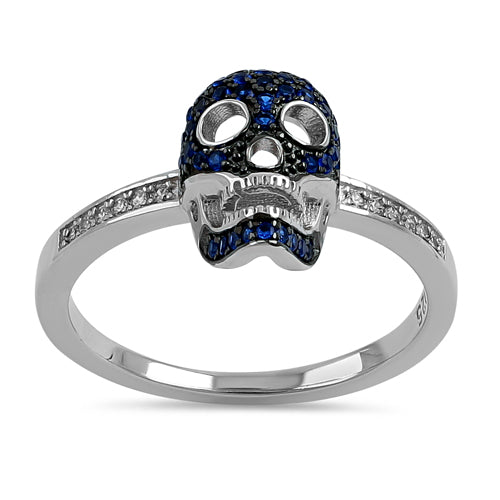 Sterling Silver Black Rhodium Two Tone Blue Spinel CZ Skull Ring