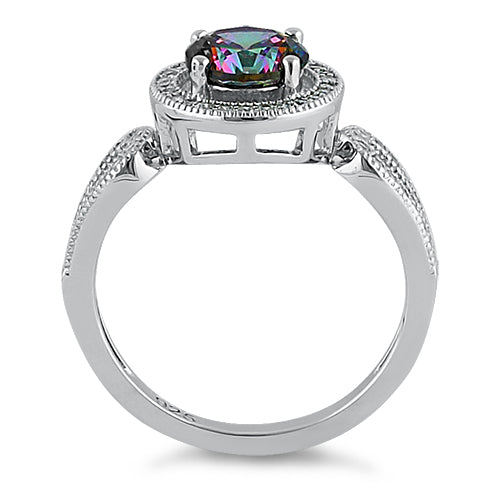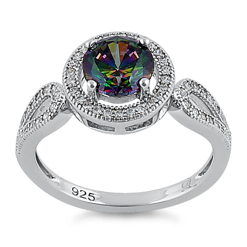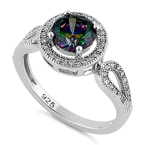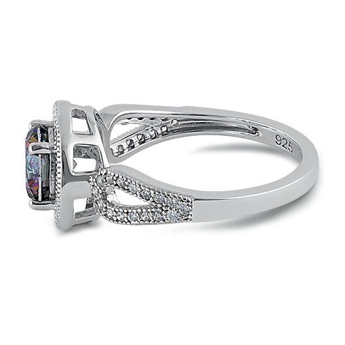 Sterling Silver Rainbow Topaz CZ Halo Engagement Infinity Band Ring