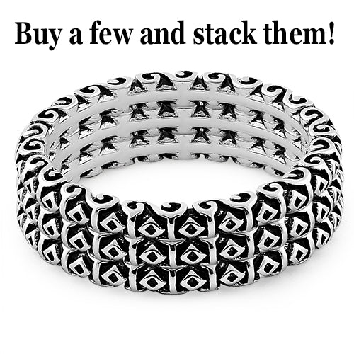 My boyfriend surprised me with two Sterling Silver Stackable Band Rings. The delicate engraving on the bands are exquiste and looks gorgeous on my thumb stacked together with the Bead and Bar ring in the middle. I love them!!