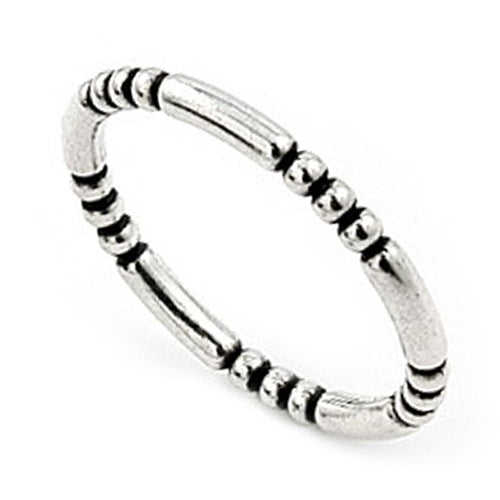 I received the Sterling Silver Stackable Bead and Bar Ring, along with two Sterling Silver Stackable band rings as gifts. I love the pattern on this band and stacked with the other two bands, my thumb couldn't look any better!! The compliments are non-stop!