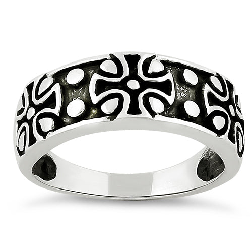 Sterling Silver Iron Cross Band Ring