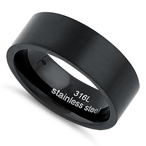 Black Stainless Steel 7mm Satin Finish Band Ring