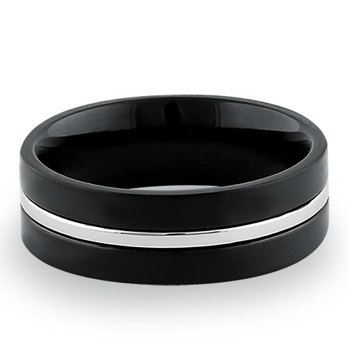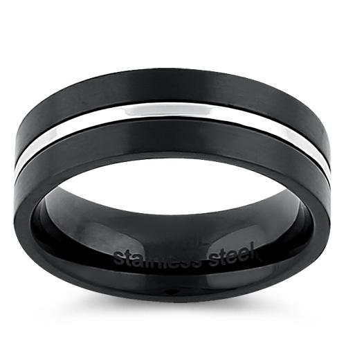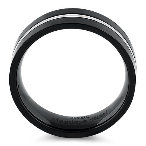 Black Stainless Steel 7mm Satin Finish Striped Band Ring