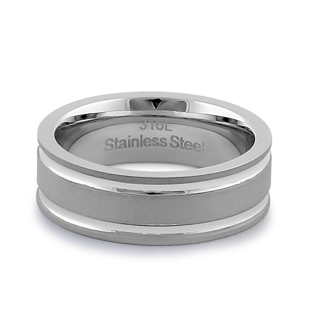 Stainless Steel Men's 7mm Matte with Polished Stripes Wedding Band