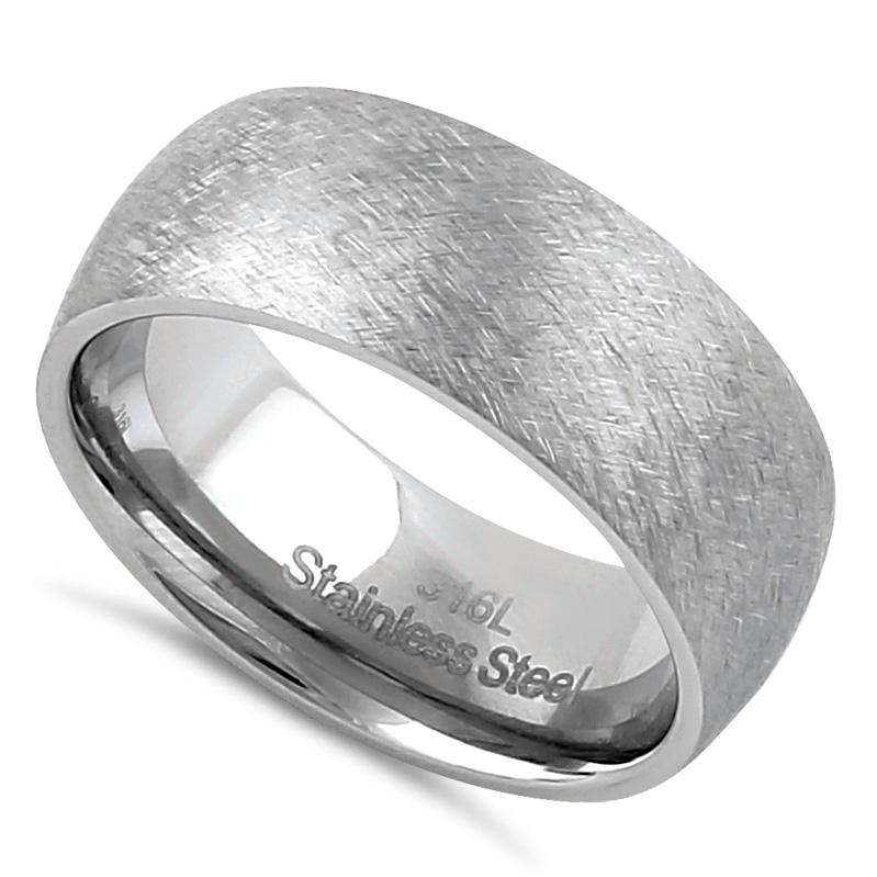 Stainless Steel Men's 8mm Mixed Brushed Rounded Wedding Band