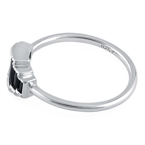 Sterling Silver Five Radiant Cut Black CZ Ring