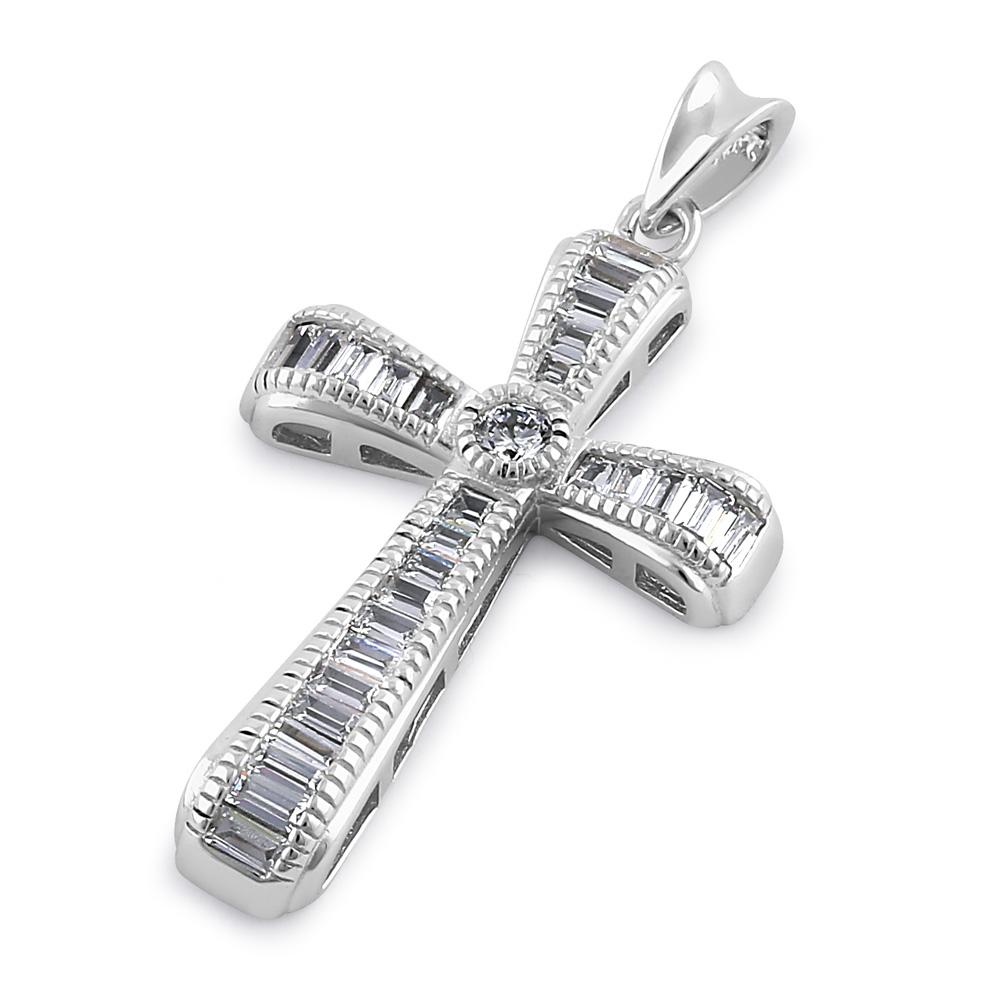 Sterling Silver Modern Cross Round and Rectangular Cut Clear CZ Pendant