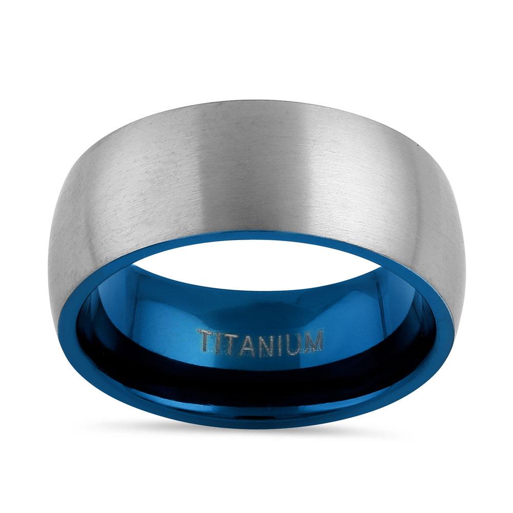 Titanium Silver and Blue 8mm Brushed Band Ring